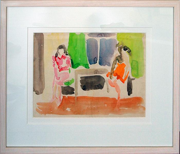 "Беседа" жанровая сцена - акварель графика