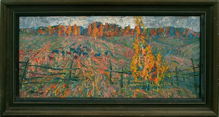"Прощай октябрь" деревенский пейзаж - масло живопись осень деревня пейзаж коровы стадо
