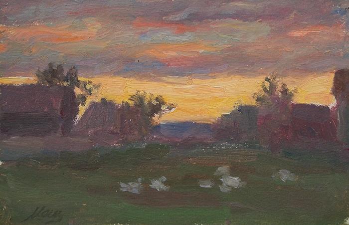 "Без названия" деревенский пейзаж - масло живопись