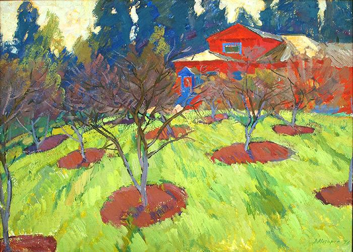 "In the Garden" rural landscape - oil painting