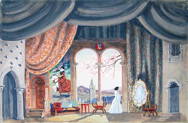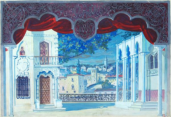 "Эскиз декорации к спектаклю "Девушка с кувшином" по одноименному произведению Лопе де Вега"